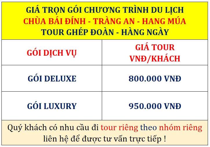 LỊCH TRÌNH CHI TIẾT: TOUR BÁI ĐÍNH- TRÀNG AN – HANG MÚA 1 NGÀY