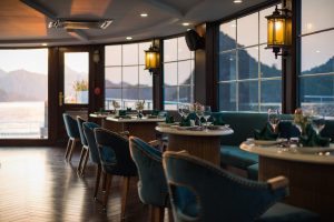 11:30 – 11:45 Boarding the CruiseThe bus will arrive at Tuan Chau marina and reach our pier, where our welcoming staff will be waiting for your arrival with a big smile. A complimentary welcome drink will be served, and a quick briefing as we set off into the bay.
