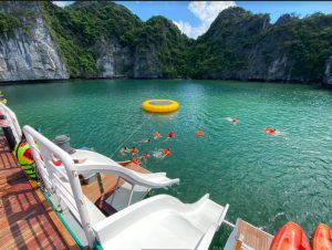 15:15 – 15:45 Frog Pond, Swimming-Lan Ha BayEnjoy in the trampoline, water slide , go for a swim, or just stay on the boat and relax in Lan Ha Bay. You will have 1hour to enjoy the sand between your toes. So, relax and take a few moments to reflect on the absolute beauty of this natural wonder of the world.