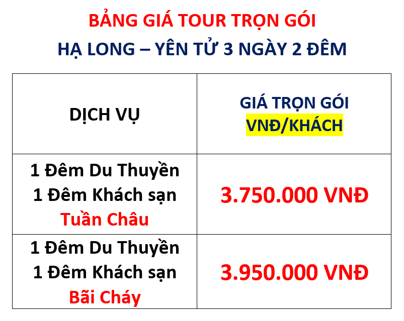 Tour Hạ Long – Yên Tử 3 Ngày 2 Đêm (2 đêm ngủ khách sạn)