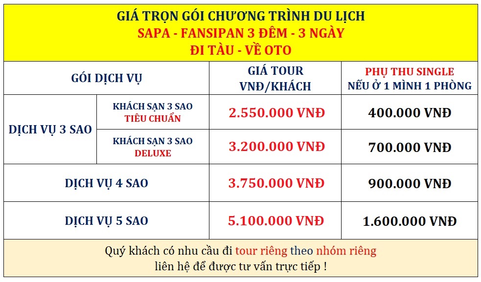 Tour Sapa – Fansipan 3 Đêm 3 Ngày – Đi Tàu Hỏa – Về Ôtô