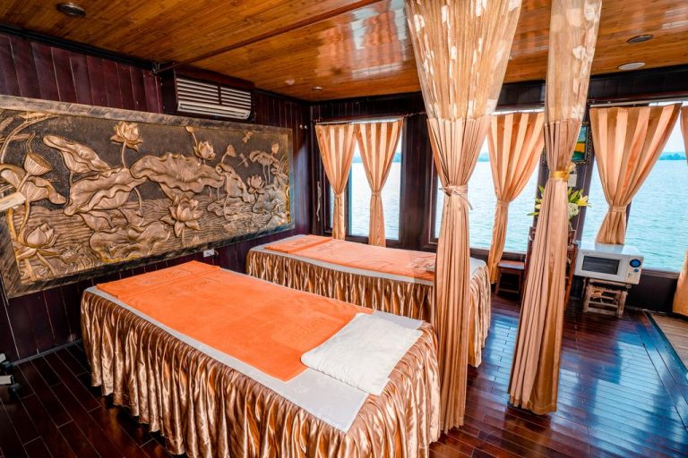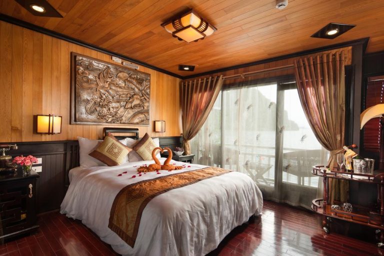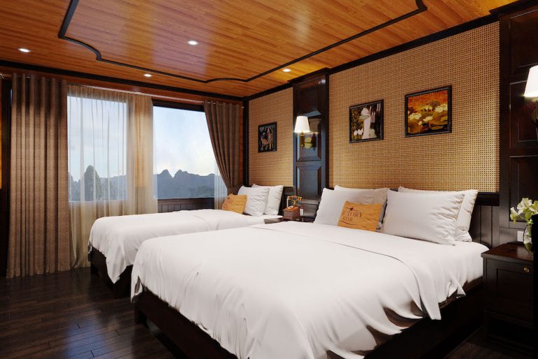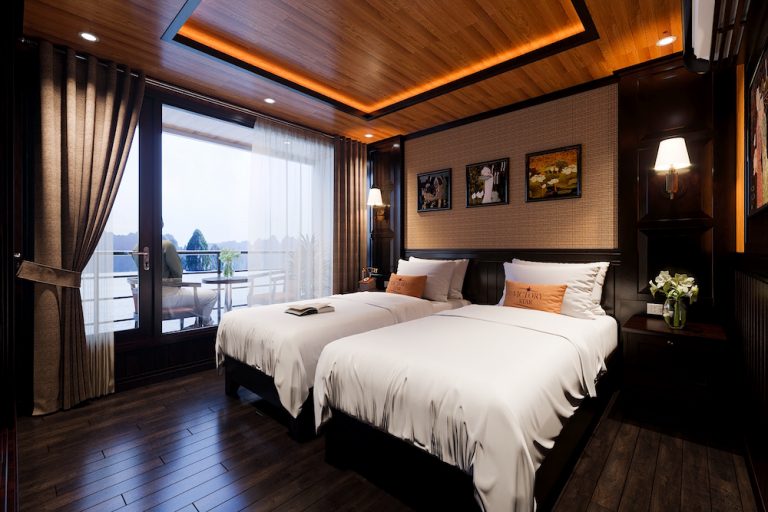 The first member of Victory Star, featuring 32 cabins, was introduced in 2009 and became the first ever luxury metal-framed cruise ship in Ha Long Bay. In 2011, Bai Tho Junks welcomed into our fleet another 24-cabin Victory Star boat in order to cater to the increasing demand of luxury cruising. Both of the ships showcase the traditional Vietnamese design concepts while achieving high standards of construction. Victory Star Cruise offers luxury accommodations for travellers with over 90 percent of the cabins offering private balconies with bay views. Onboard offerings include a spacious restaurant, bar, spa, kids play zone, sundeck area and much more.
